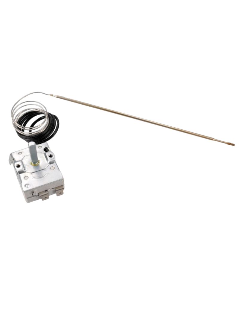 El Termostato para Horno Candy es una pieza de alta calidad y resistencia, diseñada específicamente para controlar de forma precisa la temperatura dentro del horno. Su función primordial es la de desplazarse mecánicamente con el cambio de calor interno para activar o desactivar la fuente de calor, asegurando así una cocción "al punto" en todos tus platillos.